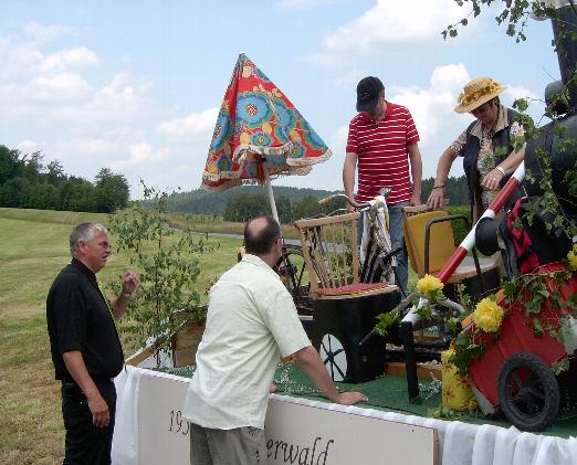 Herrichten des Festwagens 2009. Klaus, Stefan D., Stefan A. und Erna in Aktion.